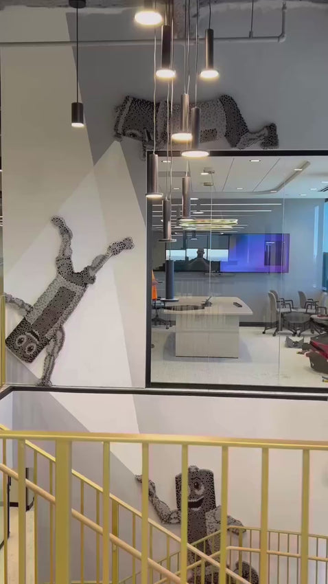 A testament to creativity and sustainability, the work not only energizes the space but also inspires all who encounter it, merging fine art with corporate identity in a way that is both bold and timeless.
